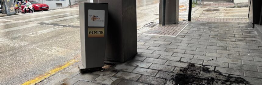 Βανδαλισμοί στην οδό Κορίνθου και καταστροφές στις ανθοστήλες με το λογότυπο Open Mall, του Ανοικτού Κέντρου Εμπορίου. Οι φωτογραφίες είναι από δυο σημεία. Απ’ την Κορίνθου και Σατωβριάνδου και απ’ την Κορίνθου και Παρθενάκου (Αρσάκειο).