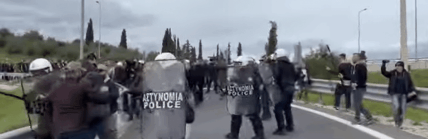 Οι συγκεντρωμένοι συνεπλάκησαν με τις αστυνομικές δυνάμεις όταν επιχείρησαν να αποκλείσουν την Εθνική Οδό.